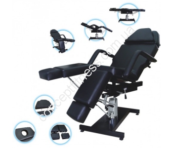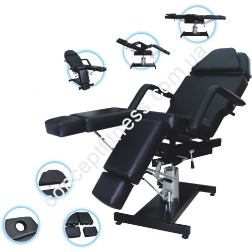 Кушетка косметологічна гідравлічна LS-235 оснащена знімними підлокітниками, м'якою подушечкою з люверсом для особи. Модель змінює висоту завдяки гідравлічному підйомнику, а габаріти технічні дані є справжнім скарбом для власників косметологічних і масажних салонів. Стіл знайшов застосування в косметологічних центрах, масажних кабінетах, зон фітнес центрів, а також проведення СПА-процедур. Кушетка представлена в декількох відтінках, складається з декількох секцій, змінює кути нахилу, гарантія на косметологічне обладнання становить 12 месяцев. кушетка ASF LS-235 володіє міцним, сталевим підставою, яке покрите порошковою фарбою. Вага моделі 61 кг, витримує 250 кг навантаження, сидіння наповнене пінополіуретаном високої якості, зверху оббите ПВХ-шкірою, вона нівелює попадання масла, води і не пропускає піт, це дуже актуально під час проведення різних косметологічних маніпуляцій. Модель вельми проста в управлінні, спинка кушетки та інші відділення регулюються механічним способом.