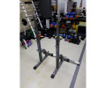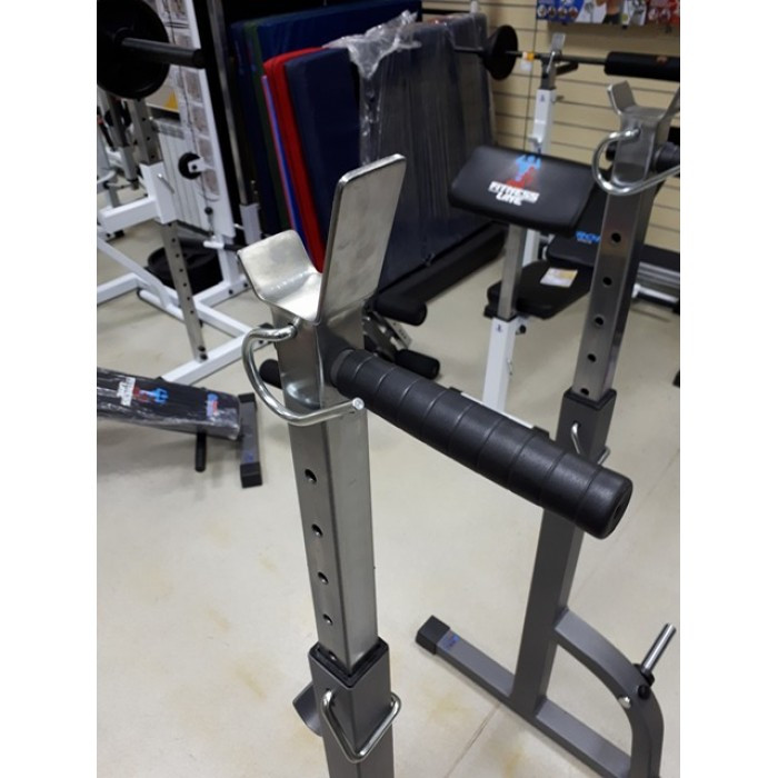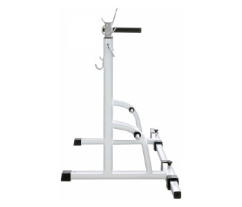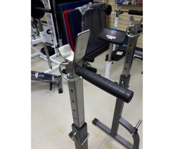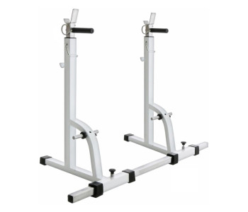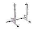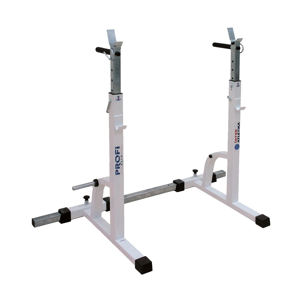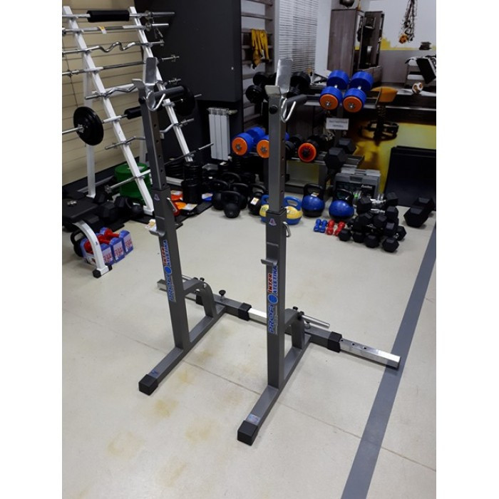 Стійки InterAtletikGym ST-007 регульовані по висоті і ширині є ідеальним спортивним снарядом для виконання базових силових вправ: присідання зі штангою, жим штанги під різними кутами (стоячи або лежачи на лаві). Сталева конструкція стійок володіє особливою міцністю і стійкістю, що забезпечує максимальну надійність і безпеку при використанні. Максимальне навантаження на Стійки Профі СТ007 - 300 кг. Телескопічний механізм регулювання стійок по висоті і ширині забезпечує зручність і гарантує правильність виконання різних вправ. Штанга може бути розміщена на будь-якій висоті від 1040 мм до 1580 мм з кроком 60 мм. Можливість регулювання стійок по ширині дає можливість застосування різноманітних грифів олімпійських, коротких тренувальних, W- і EZ- образних. Вбудовані в стійки бруси дозволяють виконувати віджимання на брусах. Стійки забезпечені скобами для фіксації штанги і додатковими штирями для зберігання дисків (діаметр штирів - 25 мм). Стійки для штанги Профі СТ-007 придатні як для домашнього, так і для професійного використання. Стійки Profi ST-007 ідеально поєднуються з лавою Profi СТ-008 і в комплекті зі штангою і гантелями будуть ідеальним тренажером для виконання різних силових вправ.