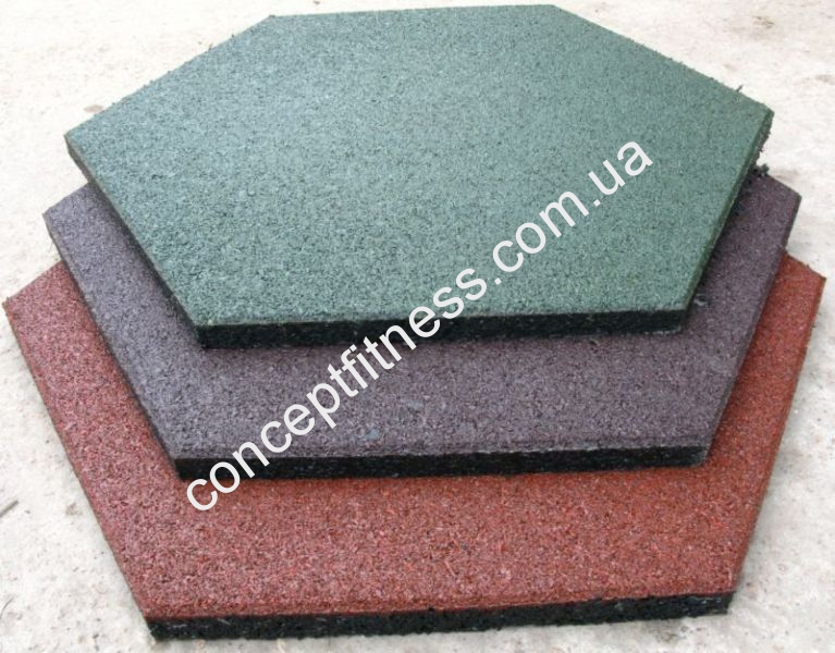 Шестикутна плитка гумова UkrGuma Eco Form 470x470х25 мм виконана з якісного каучуку, знайшла своє застосування на дитячих майданчиках, ігрових зонах, спортивних школах, тренувальних залах, включаючи тренажерні центри, а також використовується на волейбольних майданчиках. Модель з легкістю витримує падіння малюків, замінюючи подушку-амортизатор. Плитка має чудові морозостійкими характеристиками, стійка до механічного впливу, при монтажі не потрібні особливі навички, досить проста в експлуатації та догляді.
