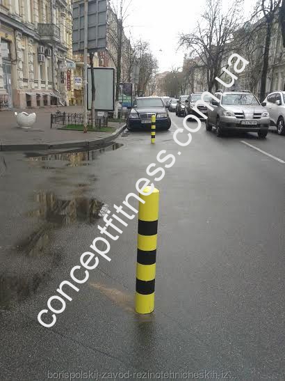 Паркувальний обмежувальний стовпчик д.250х1000 мм від виробника UkrGuma не накопичує вологу після сильних дощів, закріплюється потужними анкерними, сталевими болтами, а також посиленими шайбами. Паркувальний стовпчик застосовується для постійної або тимчасової установки, він розділяє автомобільні та пішохідні зони один від одного. Для виробництва паркувального стовпчика, був використаний якісний, міцний і довговічний матеріал ndash; гумова крихта.