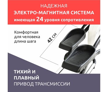 Орбитрек Spirit SE205-43 з передньопривідним маховиком з тихою трансмісією, що працює плавно без ривків, він укомплектований надійним ремінним приводом. Модель імітує біг на лижах, розвиває і зміцнює суглоби, м'язи ніг, рук, спини та попереку, роблячи позитивний вплив на опорно-руховий апарат. Встановлено 12 тренувальних програм, 24 рівнів навантаження, необхідне навантаження регулюється електронним способом. Тренажер застосовується для скидання зайвої ваги, підтримки тіла в бездоганній фізичній формі і тонусі, а також розробки суглобів після складних травм і операцій. Еліптичний тренажер домашнього користування Спірит, модель Spirit SE205-43 витримує 120 кг навантаження, при вазі 47 кг, передбачений 8 кг маховик, що дозволяє домогтися гарних результатів за стислий час тренувань. Орбитрек виділяється яскравим дизайном, оригінальністю, в поєднанні з бездоганною якістю збірки і властивостями матеріалів. Встановлено LCD-монітор, який демонструє реальну швидкість, загальний час тренування, пройдену дистанцію, температурний режим в кімнаті, годинник і рівень пульсу.