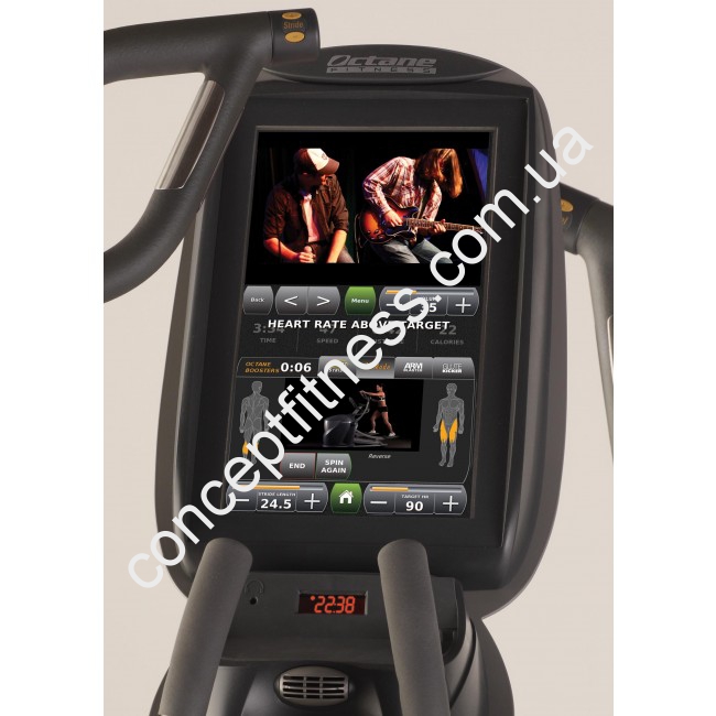 - Багатозадачний екран, що відображає розважальні програми і статистичні дані тренування