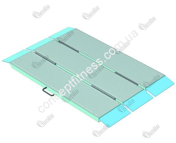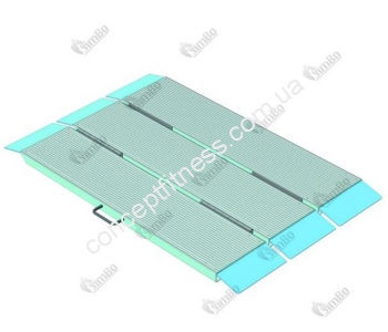 Розкладний тип портативного пандуса ПРП-150 володіє помітним стилем, сучасними формами, передбачені ручки для зручності транспортування. Модель складається по всій довжині, займає дуже мало місця в приміщенні, складається на 3 рівні частини. Пандус дозволяє без особливих зусиль потрапити на робоче місце в супермаркети, ресторани, готелі, проїзд по траншеях і іншим перешкодам. Наявність поперечного пандуса дозволяє полегшити процес подолання перешкод у вигляді бордюрів, сходинок, бар'єрів і іншого. Модель витримує 300 кг навантаження, при вазі 23 кг, а рельєфна, неслизькою поверхню, абсолютно безпечна для передвіженія.