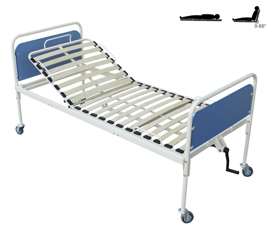 Ліжко функціональне 2-х секційна ЛФ.2.1.3.1.Д оснащена дерев'яним ложем, додатково може комплектуватися комфортним матрацом. Встановлено механізм плавного регулювання висоти секції, яка може досягати 60 градусів, і дає можливість повноцінно опертися, поїсти і попити напої хворому. Ліжко витримує 120 кг навантаження, при вазі всього лише 35 кг. Основа ліжка металева, покрита порошковою фарбою, передбачені гальма-фіксатори.