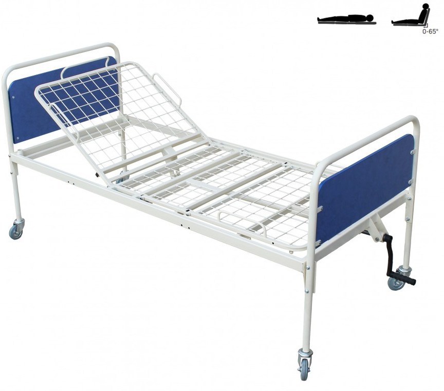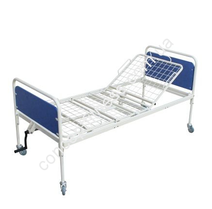 Ліжко функціональне 2-х секційна ЛФ.2.1.3.1.М витримує 120 кг навантаження, при вазі всього лише 35 кг. Модель спрощує перебування пацієнтів в медичних умовах, сприяє швидкому видужування пацієнтів. Ліжко комплектується механізмом плавного регулювання висоти секції, яка може досягати 60 градусів, і дає можливість повноцінно опертися, поїсти і попити напої хворому. Ложе металеве, за запитом може доукомплектовуватись комфортабельним матрацом.