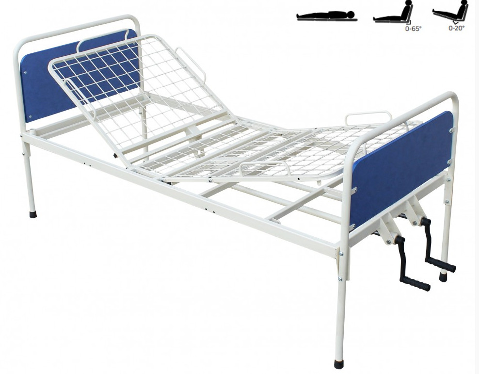 Функціональна, медична ліжко ЛФ.3.0.3.1.М, 3-х секційна додатково комплектуватися комфортним матрацом за запитом користувача. Колісна база відсутня, замість них встановлені полімерні вставки для м'якої фіксації і блокування ковзання по підлогової поверхні. Ліжко функціональне в рази полегшує, спрощує знаходження пацієнтів в медичних умовах, сприяє швидкому їх видужування. Механічні ручки дозволяє підняти секції на необхідну висоту.