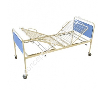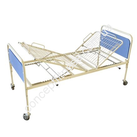 Ліжко функціональне 3-х секційна ЛФ.3.1.2.1.М володіє ручним механізмів, який допоможе підняти секції на необхідну висоту. Ложе виконане з міцного металу, модель витримує максимальне навантаження в 120 кг, має вагу 37 кг. Конструкція зроблена з міцного і надійного сталевого сплаву, яка покрито полімерно-порошковою сумішшю, додатково присутня колісна база з потужними гальмами. Плавне регулювання секцій дозволяє спертися, почитати книгу, поїсти, а також провести необхідні маніпуляційні процедури.