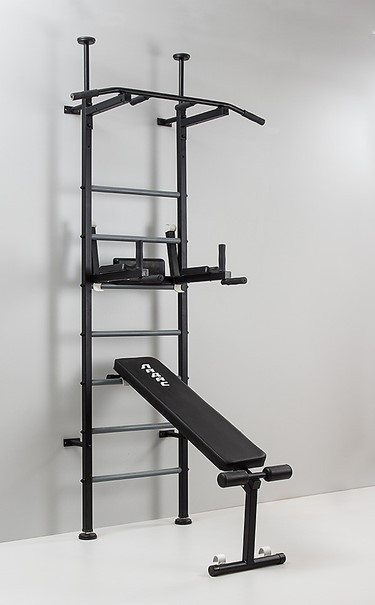 Бажаєте тренуватись вдома без зайвих витрат і незручностей? Шведська стінка Ladas Рекорд Преміум класу — ідеальна спортивна станція для дому, яка дозволяє підтримувати фізичну форму, не виходячи з кімнати. Відмінною рисою моделі є м’який упор для попереку на брусах, який забезпечує комфорт під час занять пресом та віджимань.