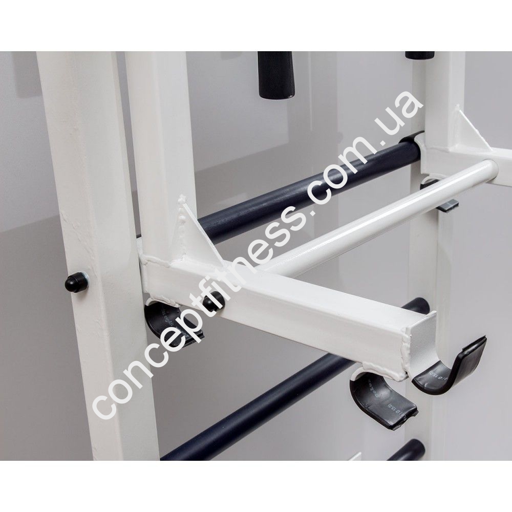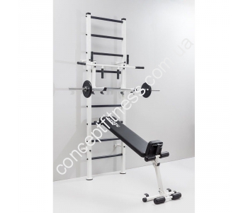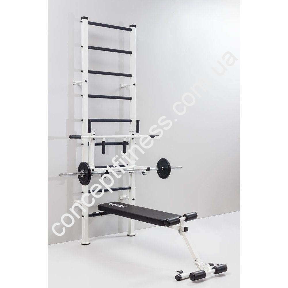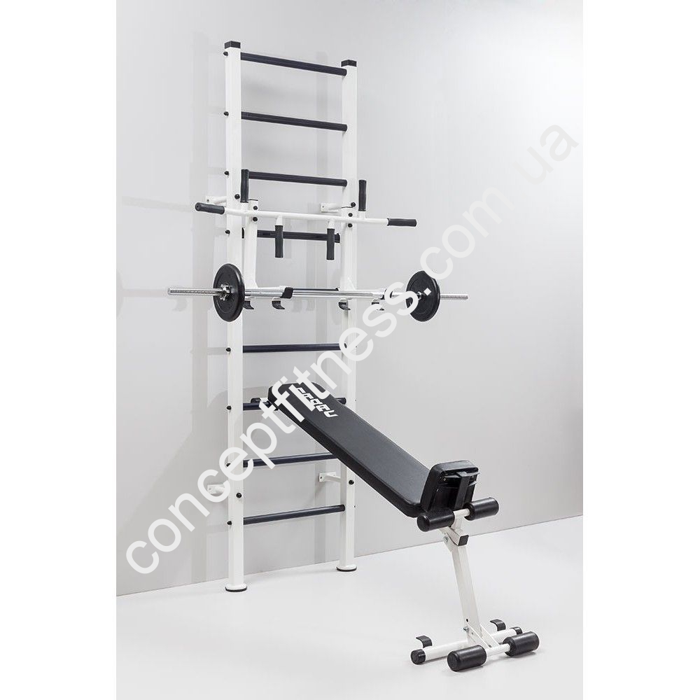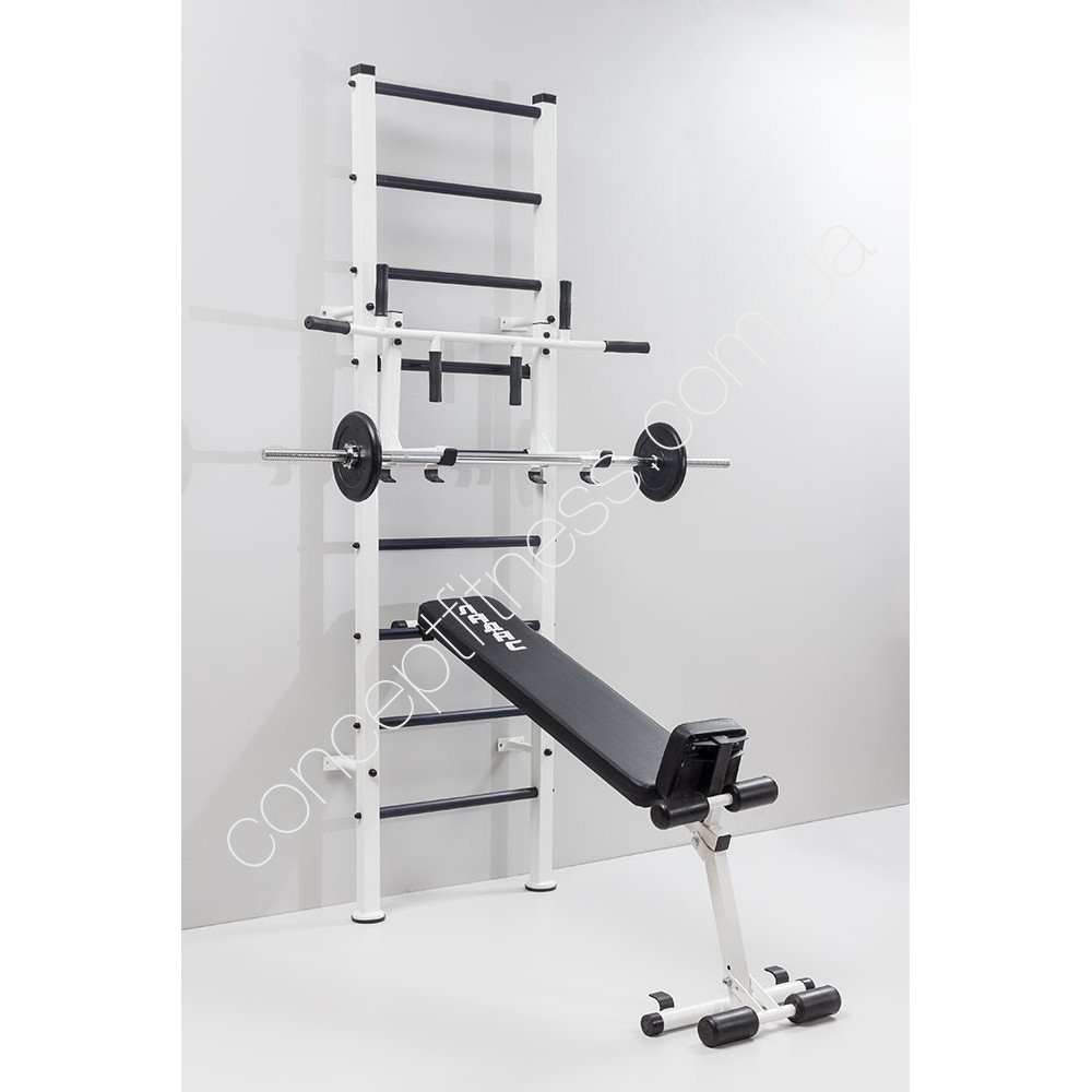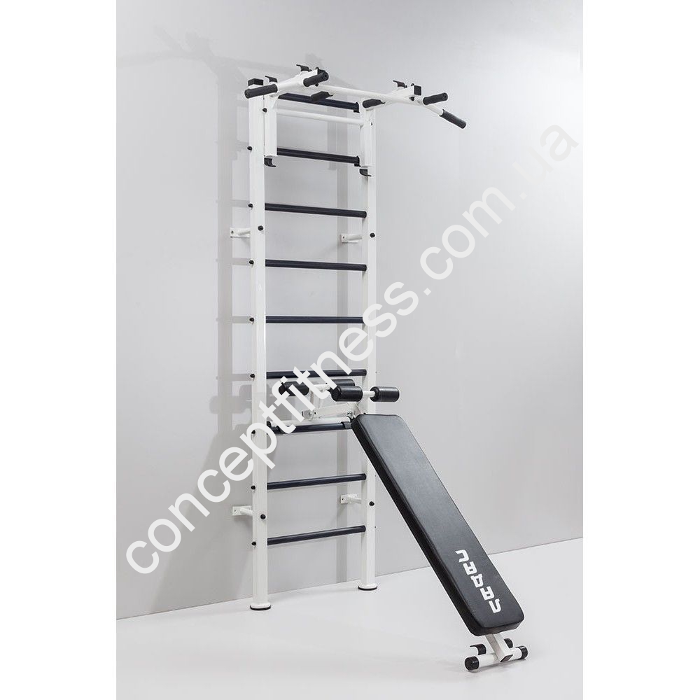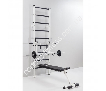 Багатофункціональна стійка Ладас СТ Атлант комплектується знімним турником, брусами, лавкою для жиму преса, а здатність витримувати 150 кг підійде для великої родини. Шведська стінка дозволить добре виглядати, не відвідуючи спортивні зали, економлячи час і гроші. Кріплення забезпечується розпірками і настінними кронштейнамі.