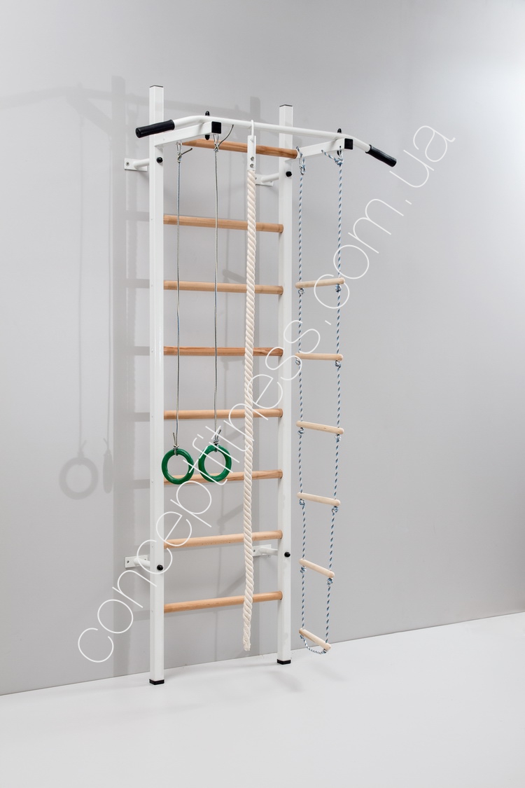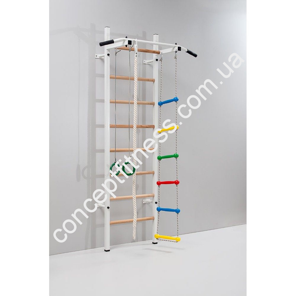 Елегантна дитяча шведська стінка Ладас СТ Пінокіо створена ексклюзивно для наймолодших спортсменів, витримує 80 кг навантаження. Встановлюється модель за допомогою розпірок і кріплення до стінки, при цьому оптимальна висота стелі від 2,3 м. Стійка допоможе скрасити сірий дозвілля вашого непосиди, провести його з користю для тіла. Широкий турнік дозволить підкачати дитячі м'язи рук зміцнити зв'язки і сустави.