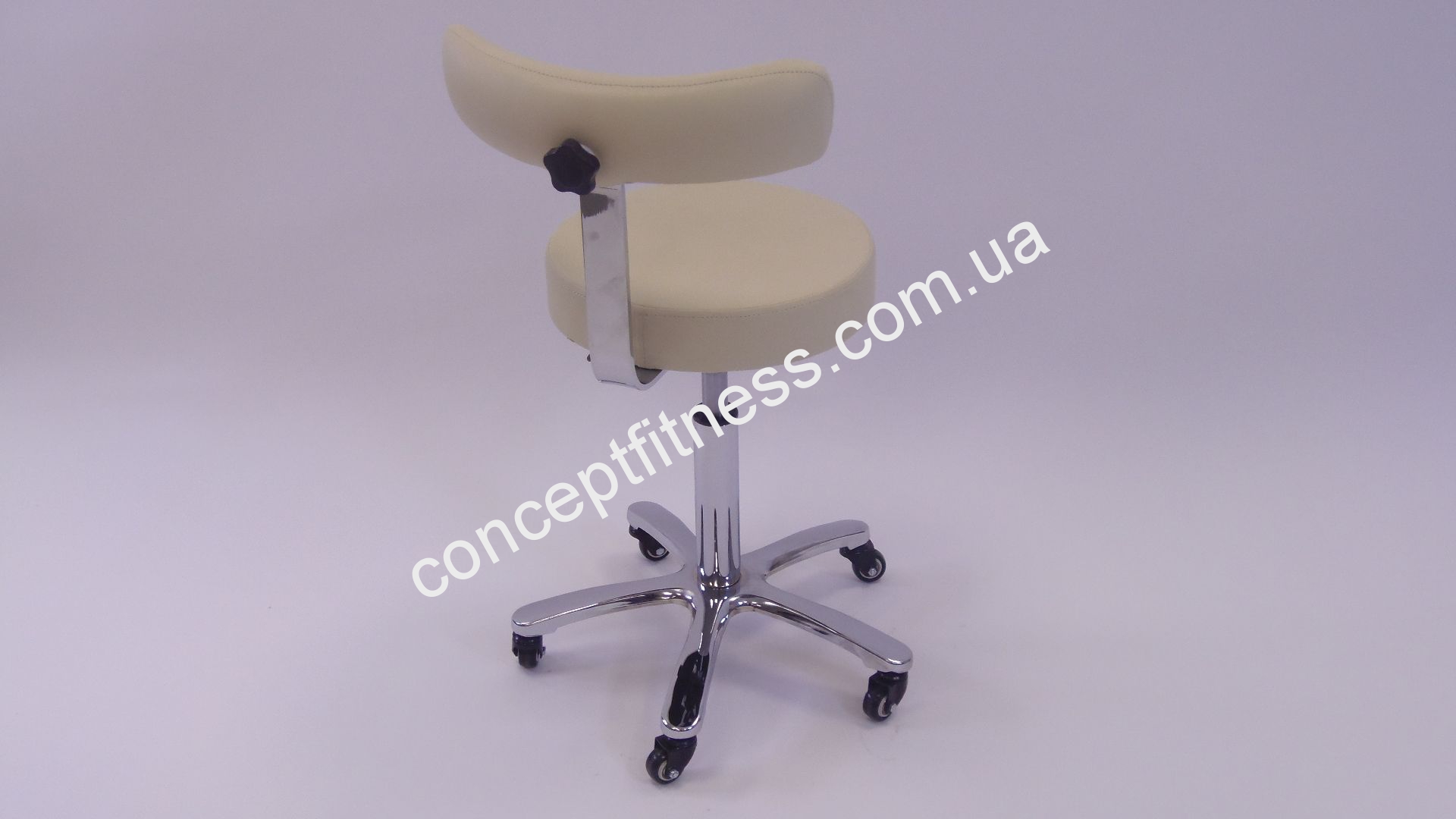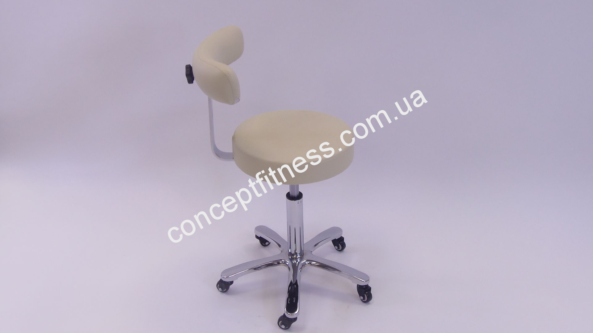 Стільчик майстра зі спинкою CH-810, ASF вельми стійкий, що не перекидається, безпечний, і не займає багато місця в салонах. Модель укомплектована пневматичним підйомником, з хромованим підставою, діаметром не більше 50 см. Гарантія на косметологічне обладнання до 12 місяців. Модель розслабляє спину майстра, після тривалої експлуатації абсолютно не втрачає початкового вигляду, добре чиститься, не дряпається. Комфортабельний стільчик з м'якою спинкою CH-810, АСФ створений для справжніх майстрів косметології і масажу. Нижні коліщатка полегшують переміщення по кабінету від столу до клієнта косметологічного салону або масажного кабінету. Оббивка виконана з якісного, водонепроникного і довговічного шкірозамінника. Висота спинки регулюється за допомогою болта на 7-8 см вгору або вниз.
