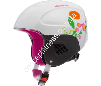 Дитячий шолом для гірськолижного відпочинку Альпіна Карат білий з квітами А9035-09 оснащений РунСістемой, що дозволяє відрегулювати розміру по окружності голови. Ремінець регулюється по довжині, забезпечує надійну фіксацію на голові. Конструкція шолома лита, а знімна підкладка і кріплення для маски зроблять модель більш практичною. Шолом зроблений з полікарбонату, а наповнювачем виступає якісний і довговічний пінополістирол.