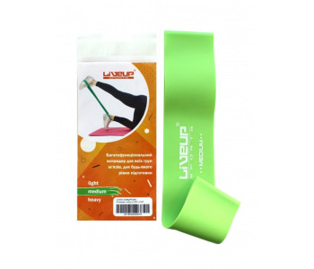 Еластична стрічка з середнім рівнем опір ЛайвАп Латекс Луп зелений урізноманітнює фізичні вправи, тренування, допоможе підготуватися до відповідальних поєдинків. Для розтягування петлі слід докласти чимало зусиль, відмінна модель для початківців спортсменів. Модель розвиває і зміцнює м'язи рук, грудей, черевного преса, ніг, попереку, спини та суглобів. Щоденні вправи надають рельєфності тілу, підтягують фігуру, зміцнюють сідниці.