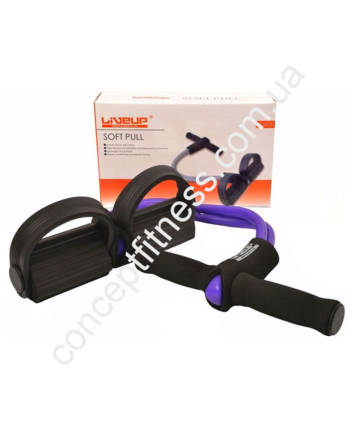 Еспандер із упорами для ніг LiveUp Soft Pull чудово задіє основні м'язи ніг, рук, а також опорно-рухового апарату. Ножні підставки еспандера виготовляються з ненополіетілена високої якості. Модель використовують при занятті йогою, пілатес і фітнесом. Для розтягування еспандера необхідно прикладати багато зусиль для створення рельєфності м'язів, зміцнення зв'язок і суглобів. Еспандер не збільшує обсяг м'язів, але допомагає збільшити еластичність, рухливість, зміцнити й підтягти їх.