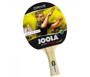 Ракетка для настільного тенісу Joola Drive оснащена 1 мм губкою з шипами назовні, накладка гумова, має вагу 132 грам. Модель вельми легка, маневрена, не вислизає з рук, рукоять при інтенсивних навантаженнях, напружених матчах не пітніє. Підстава 5-ти шарове, виконано зі шпону, допоможе виконати переможні удари по столу опонента, а обертальні, швидкісні показники застануть противника зненацька. Любительська тенісна ракетка Джула Драйв створена для універсальних стилів гри, а конічна форма рукоятки дозволяє виконувати різні маневри під час гри. Модель часто використовується в тенісних школах, на аматорських змаганнях, чемпіонатах, схвалена міжнародної тенісної ассоціаціей.