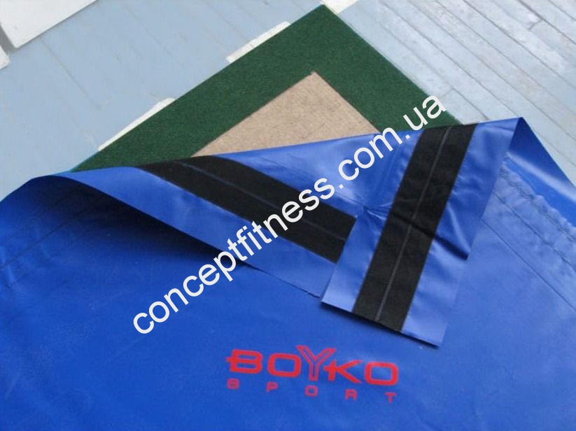 Покриття триколірний з ПВХ Boyko, нестандарт завершить стильний образ тренувального залу, прикрасить інтер'єр, крім цього тканину абсолютно не слизька, з боків можна зафіксувати щільною планочкою. Для виробництва покриття був задіяний щільний, якісний і довговічний ПВХ, щільністю 650 гр /м2. Підлоговий килимок для боротьби Бойко-Спорт в нестандартному розмірі відрізняється наявністю логотипу відомого спортивного бренду, що вказує на статус закладу, рівень майстерності бійців. На все борцівські обладнання надається 12 місячна гарантія, ціна вказана за 1 м.кв. Покриття має гарну зносостійкість, призначене для борцівських цілей, активних тренувань, проведення показових виступів.