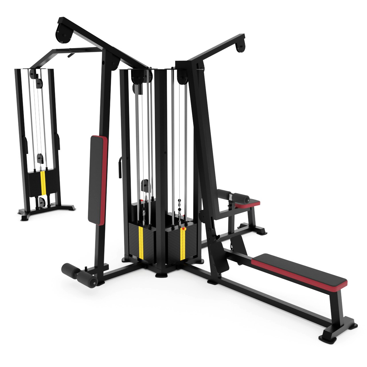 Станція з блочною рамкою BruStyle ТС-203, 4 позиції допомагає виконати цілий комплекс вправ, серед яких: розгинання і зведення рук, кросовер, верхня тяга, а також скручування пресових м'язів. Вантажоблочний тренажер прокачує спинні, ножні м'язи, а також плечового відділу, шиї і черевного преса, зміцнюючи паралельно вестибулярний апарат в цілому. Передбачено 5 стеків, вага кожного 105 кг, а рама виконана з міцного, сталевого матеріалу, гарантія на яку довічна. Багатофункціональний тренажер з блочною рамкой ТС-203 сприяє відведенню ніг в сторони, назад, дозволяє виконати перехресний підйом, підйом рук перед собою. Модель займає мінімум місця, якщо скласти площу всіх тренажерів необхідних для виконання вправ окремо. Підлокітники, валики і сидіння оббиті м'яким вініловим матеріалом, а всередині знаходиться пружний поролон.
