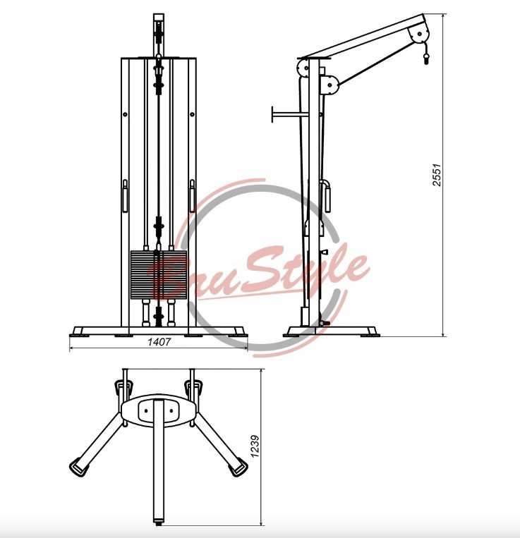 Блокова рамка одинарна BruStyle ТС-207 прокачує сідниці, стегна, шийний відділ, дозволяє виконати підтягування, ходьбу на руках у висячому положенні. Модель використовується в парі з регульованою лавою, активно використовується в спортивних залах, тренажерних центрах. Конструкцію повністю сталева, на яку поширюється довічна гарантія. Багатофункціональний тренажер професійної лінійки ТС-207 розвиває біцепси, трицепси, дельтовидні м'язи, грудну клітку, а також попереку і спини. Рамка оснащена одинарним, вагою 105 кг, при необхідності модель може доукомплектовуватись тяговими рукоятками.