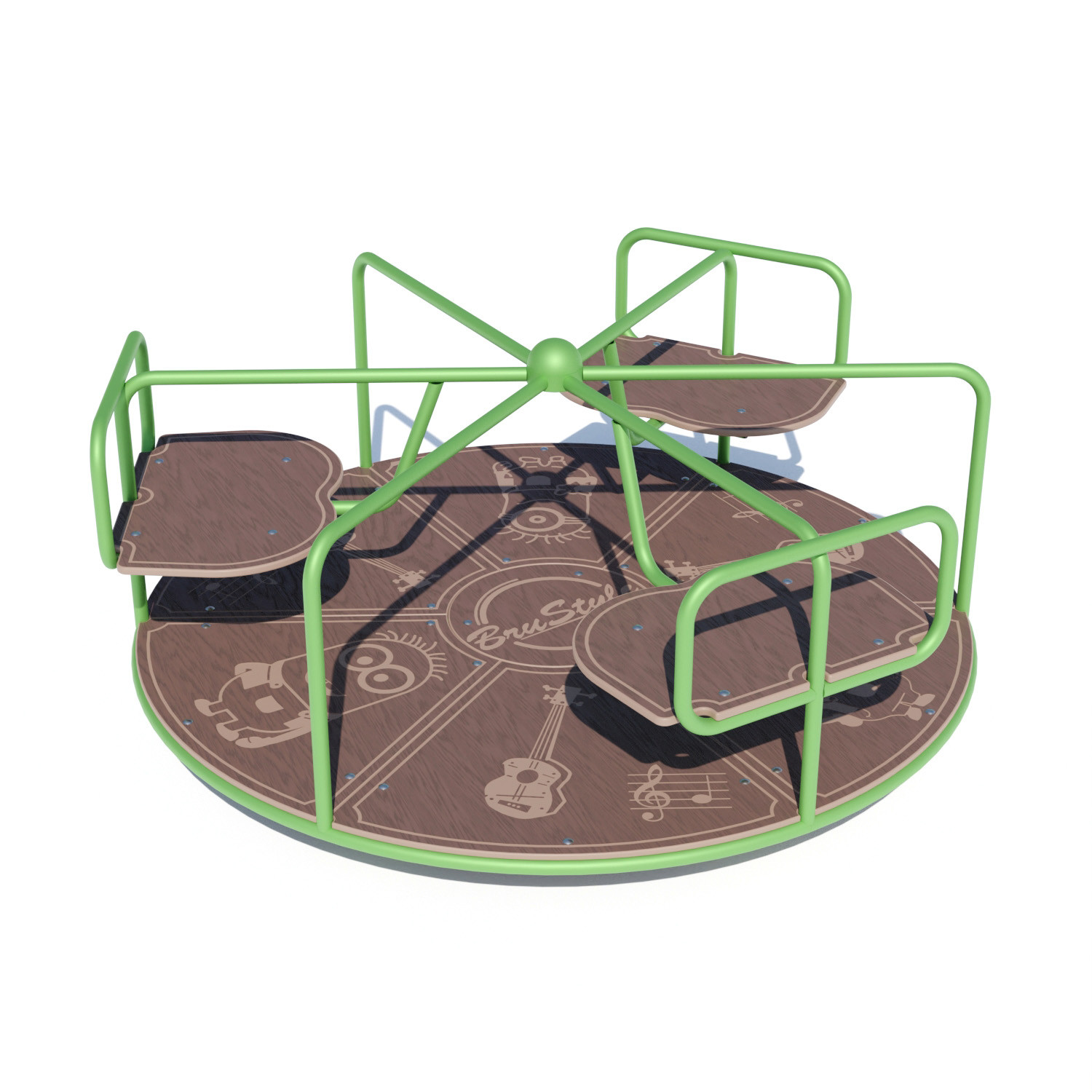 Дитяча карусель DIO306 BruStyle підійде для сидячого і стоячого катання, є незамінним аксесуаром на дитячому майданчику. Каркас виконаний з натуральної стали, обертається за допомогою підшипників, а підлогу каруселі ndash; дерев'яний, фанера. Місткість каруселі 6 діточок, крім веселощів вона розвиває м'язові тканини, руки, ноги, прес, впливає на координацію, рівновагу, рухливість, вестибулярний апарат. Карусель займе малюків, дозволити батькам трохи відпочити на лавочках. Устаткування приваблює діточок, заворожує своїм виглядом, стилем, формами. Всі деталі пофарбовані порошковою фарбою турецького якості, карусель встановлюється на дитячих майданчиках, пансіонатах, базах відпочинку, готелях, у дворах і дитячих садках.