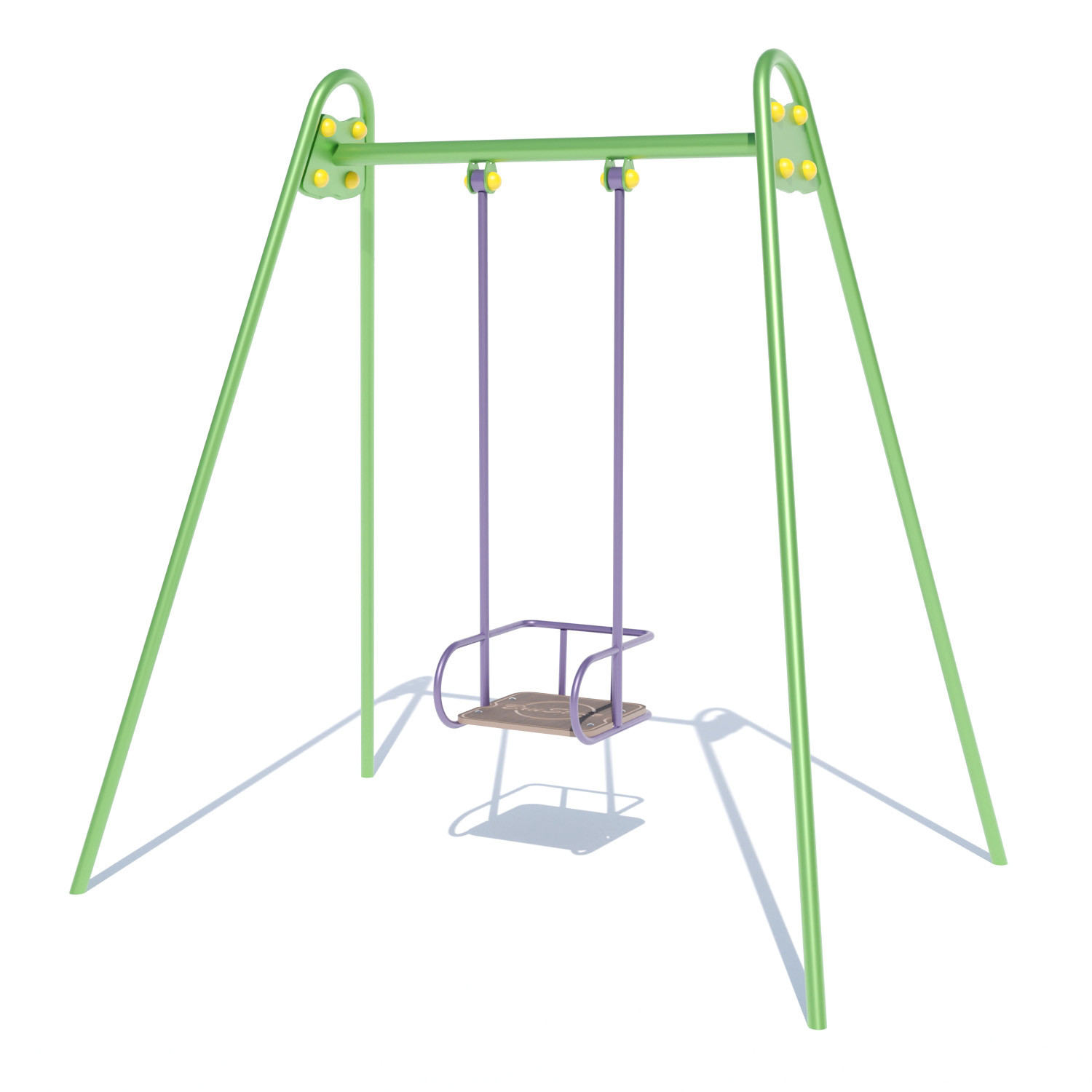 Гойдалки одинарні металеві DIO309 BruStyle піднімуть малюків в повітря, де вони зможуть парити немов птахи. При катанні на гойдалці слід дотримуватися елементарної безпеку щоб уникнути травматизму та не зістрибувати на ходу. Під час зледеніння, дощу, снігу або граду, малюків не варто відпускати на майданчик, щоб вони не травмувалися. Сидіння має спинку, підлокітники, а також дерев'яну основу. Прямокутна конструкція, кріплення блокують переставлення.