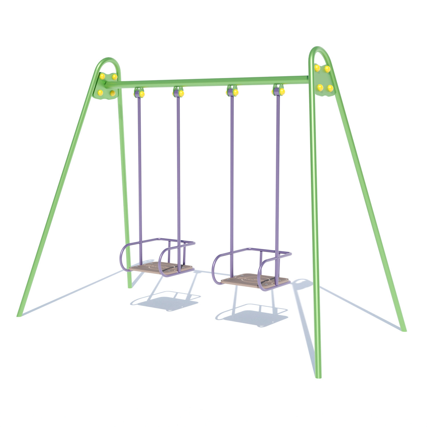 Вуличний інвентар, подвійна гойдалка DIO310 виконаний з міцної, якісної сталі, додатково можна одягнути хомути і засвердлити в бетонну основу, приварити до труби. Гойдалки залучають непосид, заворожує своїм виглядом, стилем, формами. Всі деталі пофарбовані порошковою фарбою, гойдалки встановлюються на дитячих майданчиках, пансіонатах, базах відпочинку, готелях, у дворах і дитячих садках. Катання на гойдалках дозволяє малюкам відчути себе птахами, ширяє над хмарами.