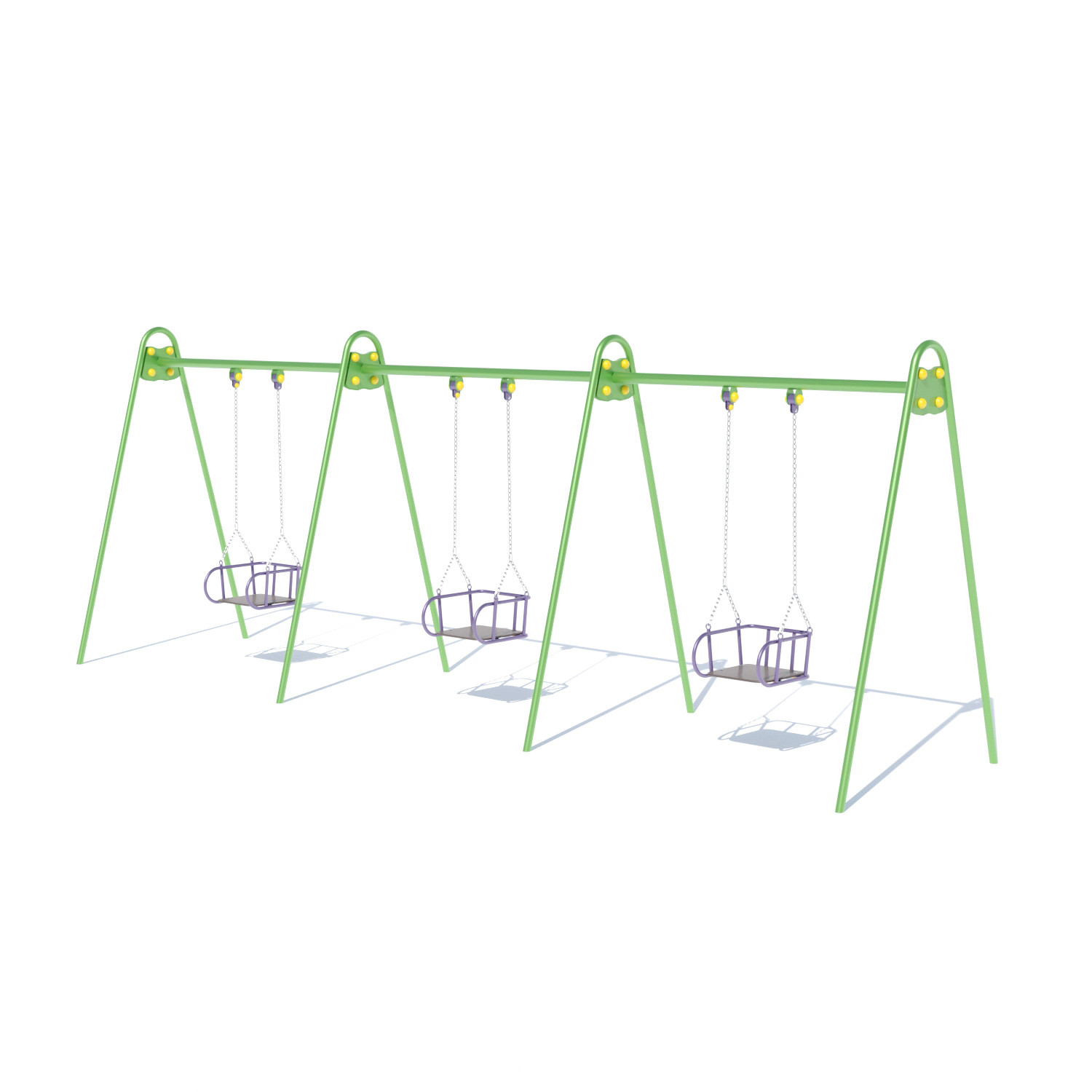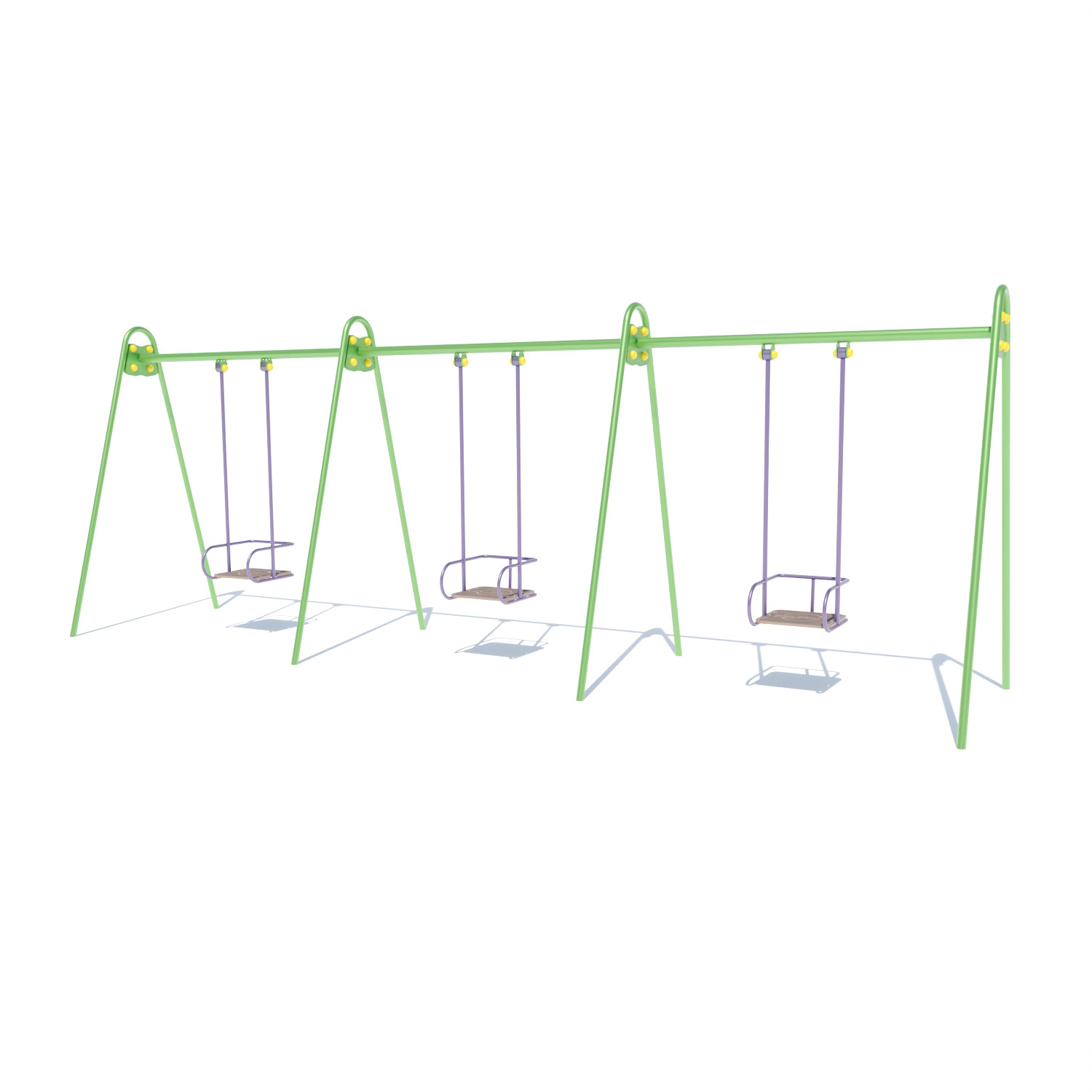 Вуличний інвентар, гойдалки для трьох дітей DIO311 маю комфортні, безпечні сидіння зі спинкою, підлокітниками. При катанні на гойдалці слід дотримуватися елементарної безпеку щоб уникнути травматизму та не зістрибувати на ходу. Всі деталі пофарбовані порошковою фарбою, гойдалки встановлюються на дитячих майданчиках, пансіонатах, базах відпочинку, готелях, у дворах і дитячих садках. Модель виконана з міцної, довговічної стали, яка покрита порошковою фарбою, щоб уникнути розповсюдження коррозіі.