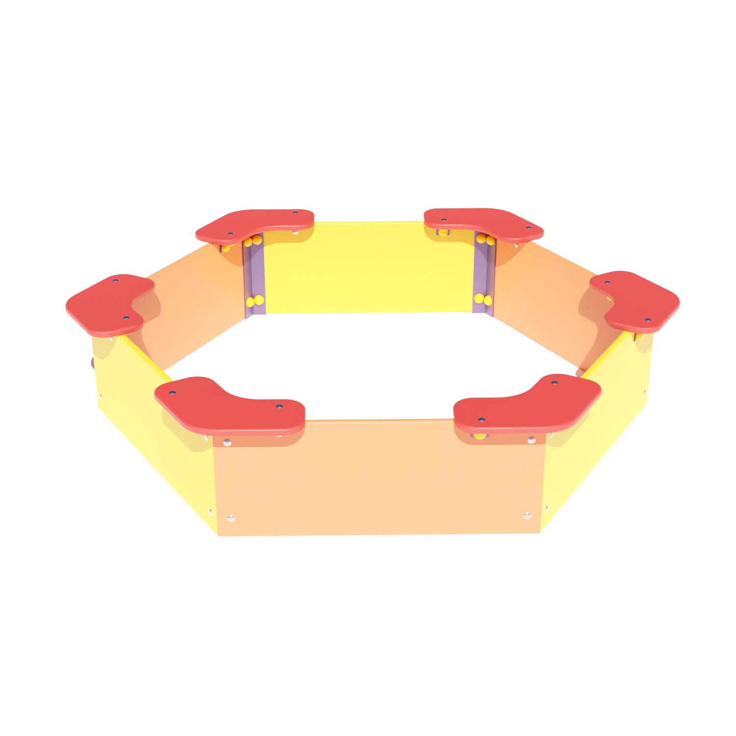 Пісочниця шестикутна DIO206 B-Style допоможе побудувати незвичайні замки, міста, пісочну дорогу, пофарбована яскравою порошковою фарбою, колір підбирається на розсуд замовника. Модель вуличного призначення, гарантія на інвентар 12 місяців. Пісочниця зроблена з якісного, натурального і вологостійкого матеріалу ndash; дерева, фанери.