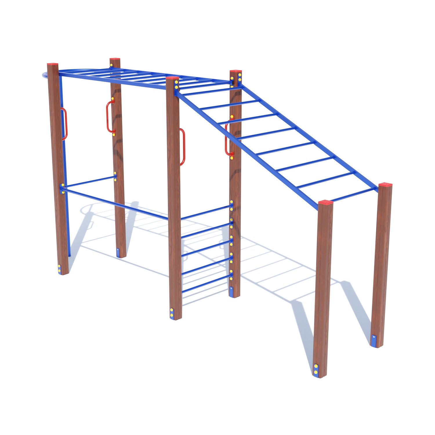 Вуличний спортивний комплекс Рукоходік DIO602 має всі санітарні висновки, сертифікати якості та відповідності. Модель буде схвалена малюками, її встановлюють біля садочків, баз відпочинку і готелів, шкіл, пансіонатів. Якісна фарба зберігає вигляд виробу протягом довгих років експлуатації, не вицвітає, що не змивається дощем. Для виробництва задіяли міцні дерев'яні стовпчики, на яких закріплена сходи-рукоход.
