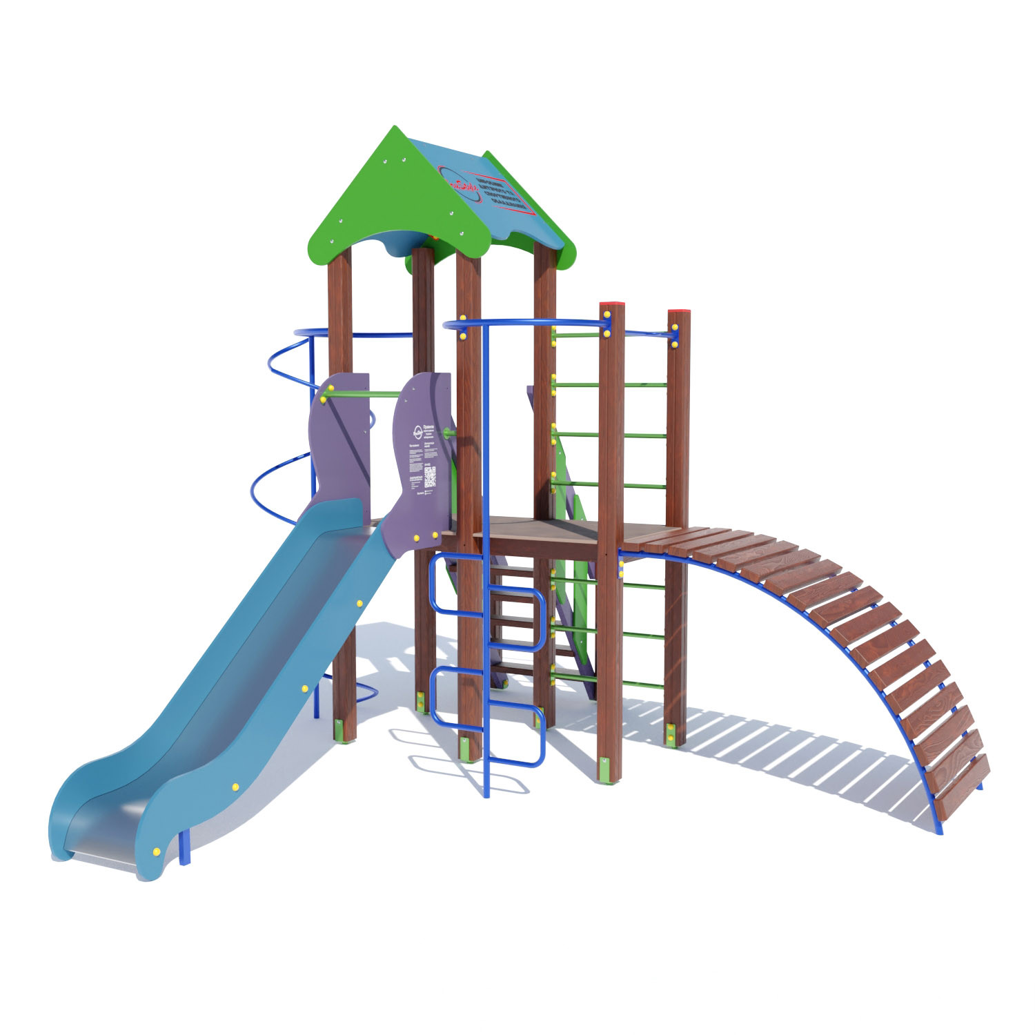 Ігровий комплекс Сонечко DIO-715 BruStyle вкриє від невеликого дощу, допоможе насолодитися крутим спуском з гірки, підняттям по трапу з перилами. Модель зроблена з натуральних і якісних матеріалів, які не викликають алергію і роздратування. Комплекс підходить малюкам до 14-ти років, замінює заняття в спортзалах. Необхідно бути уважним в сильні снігопади і морози, краще обмежити заняття, щоб не призвести до травматизму.