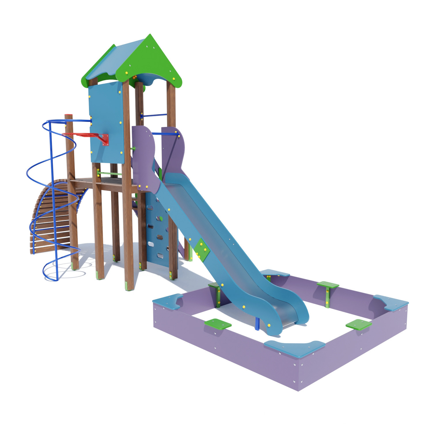 Багатофункціональний комплекс з пісочницею Піраміда DIO807 комплектується гіркою для швидкого спуску, двома лазами, сходами, міцними канатами і дошкою для юного скелелаза. На дану модель поширюється 12 місячна гарантія, в наявності вся необхідна документація. Лазіння, стрибання розвивають м'язи ніг, рук, плечей, преса, суглоби і вестибулярний апарат. Комплекс забарвлений декількома шарами порошкової фарби, дуже стильний, сучасний і яскравий. Вуличне обладнання подарує позитивні емоції, зміцнить організм, імунітет, тонус, допоможе завести нових друзів.