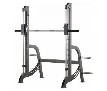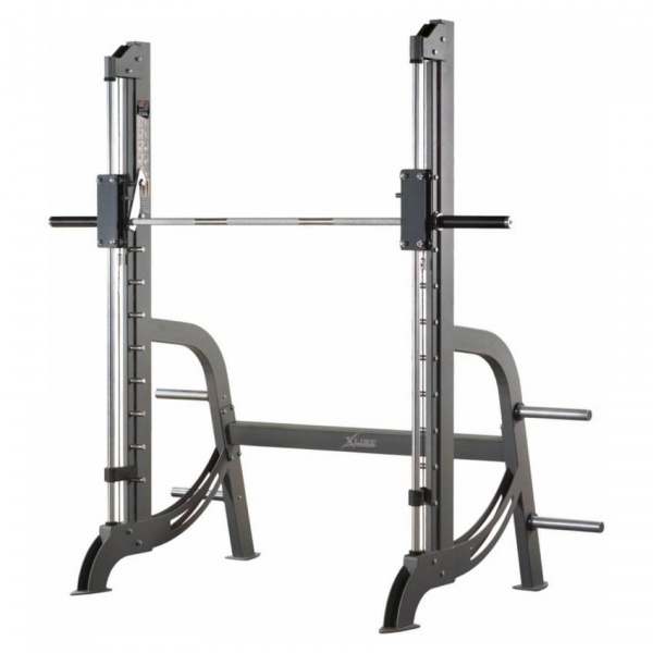 Машина Сміта XR217.1 є посилену Машину Сміта на лінійних підшипниках, має елементи XR217 Машини Смитта, а також XR316 Рамки для присідань. Машина Сміта XR217.1 призначена для тренування дельтоподібних м'язів, трицепса, чотириголового м'яза стегна, трапецієподібної м'язи, сідничних м'язів. Тренажер необхідний для фізичної підготовки спортсменів різних видів спорту, дуже ефективний для тренування чотириголового м'яза стегна, формування сильних і красивих ніг. Конструкція тренажера дозволяє максимально включити в роботу квадріціпси, зокрема - їх нижню область трохи вище колін. Механізм зчленування каретки з направляючими зібраний на 8-ми підшипниках виключають будь-який перекіс і забезпечують м'яке ковзання. Гриф забезпечений страхувальними крюками-зачепами, що забезпечують безпеку. Наявність штирів для дисків надає додаткову зручність під час тренування. По універсальності laquo; Машина Смітаraquo; є досить привабливим тренажером. Приставивши регульовану лавку, на цьому тренажері можливо досить комфортне виконання різних жимів на м'язи грудей і верхнього плечового пояса. Забарвлення: порошкова емаль (електростатичне напилення). Гарантійні зобов'язання: На зварні рамні конструкції ГАРАНТІЯ - ДОВІЧНО, На механічну частину тренажера ГАРАНТІЯ - 3 роки, На трос ГАРАНТІЯ - 2 роки, На м'які частини тренажерів Гарантія - 1 рік.