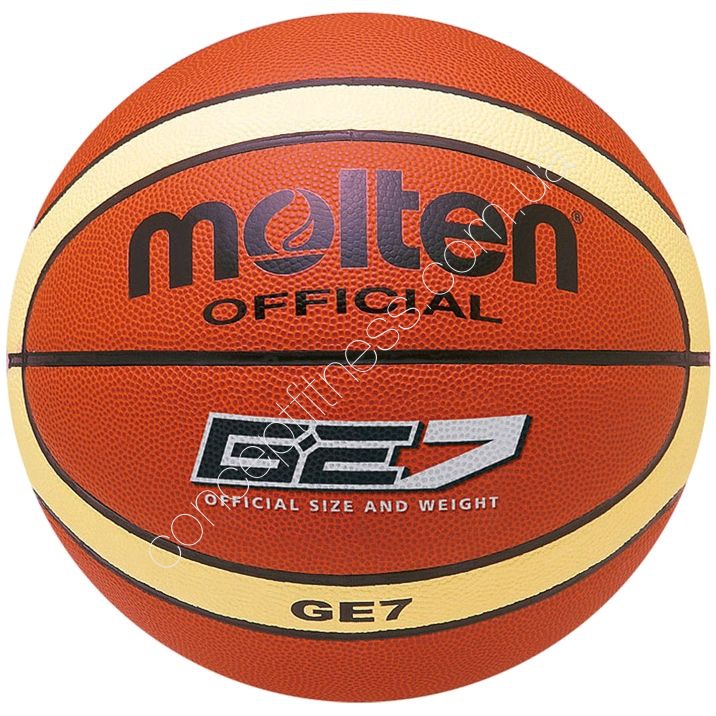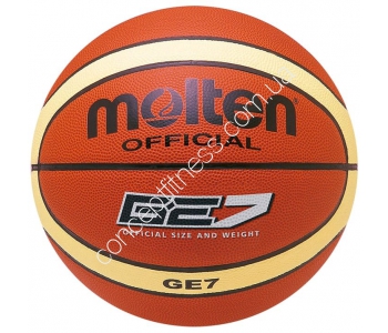 М'яч баскетбольний Molten BGE7 активно використовується для аматорських та професійних виступів. Модель легко контролюється в процесі ігор і тренувань, складається з 12-ти панелей, склеєних між собою. Оптимальний тиск - 0,6 бар, м'яч виконаний з міцної, зносостійкої і довговічною гуми, всередині розміщена бутилова камера. Антирозривні камера витримує динамічний ритм ігор, професійні поєдинки.