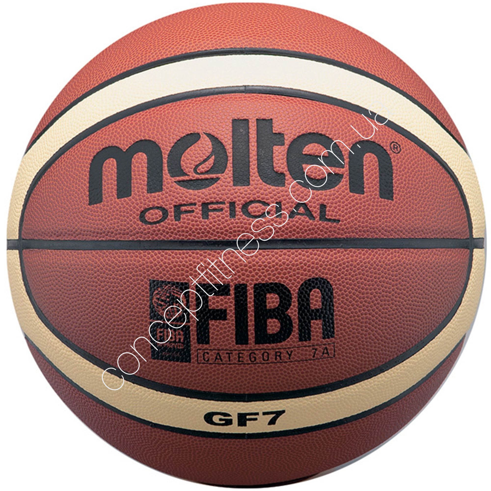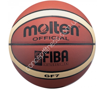 Баскетбольний інвентар з композитної шкіри Молта BGF7 розроблений для тренувальних і показових цілей, професійних ігор, схвалений Міжнародною баскетбольної асоціацією. Модель 7 розміру, вагою 620 грам, складається з 12 панелей, склеєних між собою. Оптимальний тиск - 0,6 бар, антирозривні камера виконана з міцної, зносостійкої і довговічною гуми-бутіла.