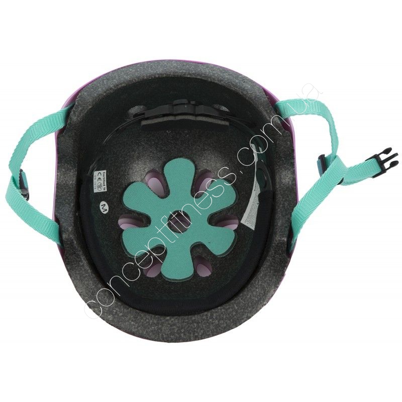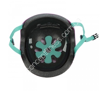 Інвентар для захисту голови дівчаток реакційних RHK2-6-X2 укомплектований м'якою підкладкою, що гарантує комфортний, стабільний мікроклімат. Шолом розрахований на новачків і просунутих ролерів, а ергономічні форми є гарантом м'якої посадки. Модель доукомплектована вентиляційною системою, системою регулювання розміру, щільними фіксують ремінцями.