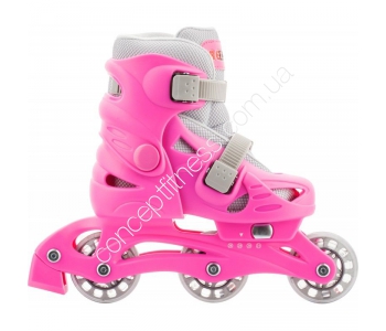 Розсувний тип ковзанів для дівчаток реакційних RC15G-X2 виконаний в ніжних, рожевих тонах, укомплектований двома гальмами. Підшипники типу ABEC1, встановлені в колесах діаметром 64мм. Ролики прогулянкового призначення, рама виконана з композитного і якісного матеріалу, UFS-стандарту.