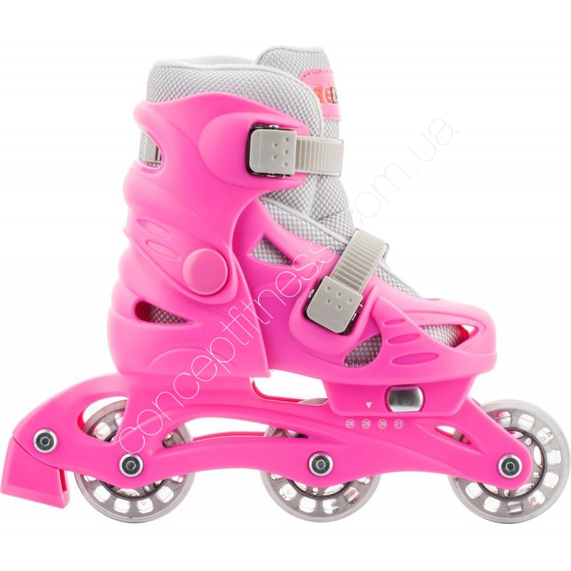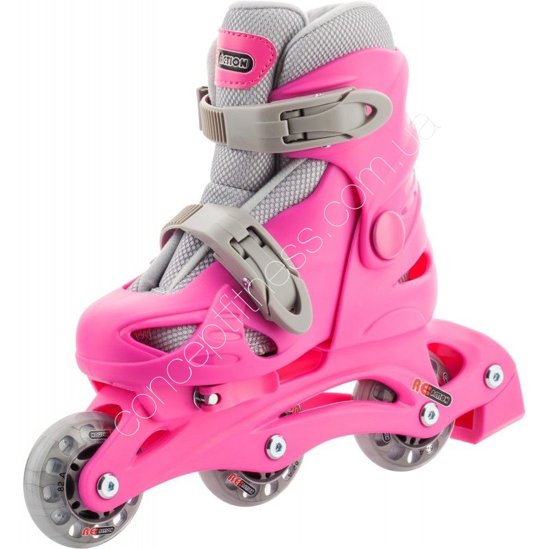 Роликові ковзани дитячі Reaction RC15G-X2 популярні серед дівчаток, створення для їзди по тротуарах, закритим спортивним майданчикам. Гарантія на обладнання 2 роки, воно характеризується яскравим дизайном, ергономічними формами, підійде не тільки для професіоналів, але і новачків. Фіксація на нозі відбувається двома кліпсами, надана можливість зміни по довжині, що дозволяє використовувати їх на протязі декількох років.