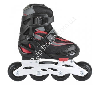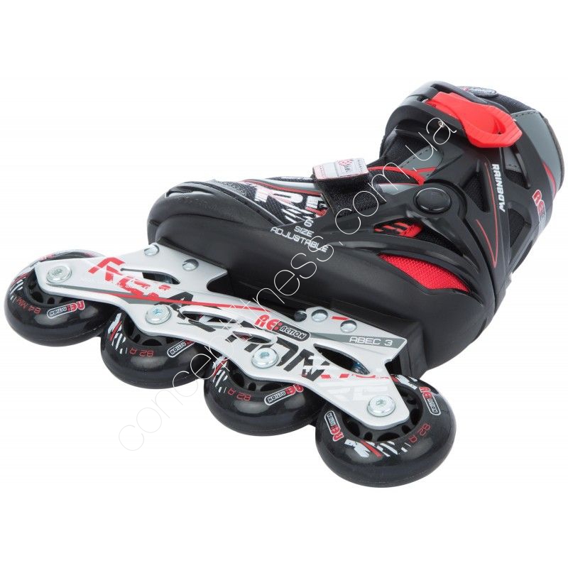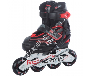 Чорно-червоні розсувні ковзани для хлопчиків реакційних RN16B-R мають підвищену маневреністю, стійкістю, діаметр передніх коліс ndash; 64мм, а задніх ndash; 70мм. Для виробництва ковзанів виробник використовував еластичні і легкі матеріали. Фіксація забезпечується кліпсами на щиколотці, шнурками, ремінцем.