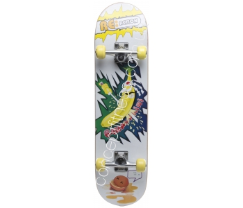 Підліткова дошка для вуличних трюків реакційних RSKB315-96 виготовлена з комплексних матеріалів, включаючи дерево, алюміній, метал, силіциуму, поліпропілен. Завдяки конструкції, скейтборд може витримувати до 70 кг навантаження. Гарантія на скейтборд 2 роки, не вимагає спеціального догляду, витримує вологу і потрапляння прямих сонячних лучей.
