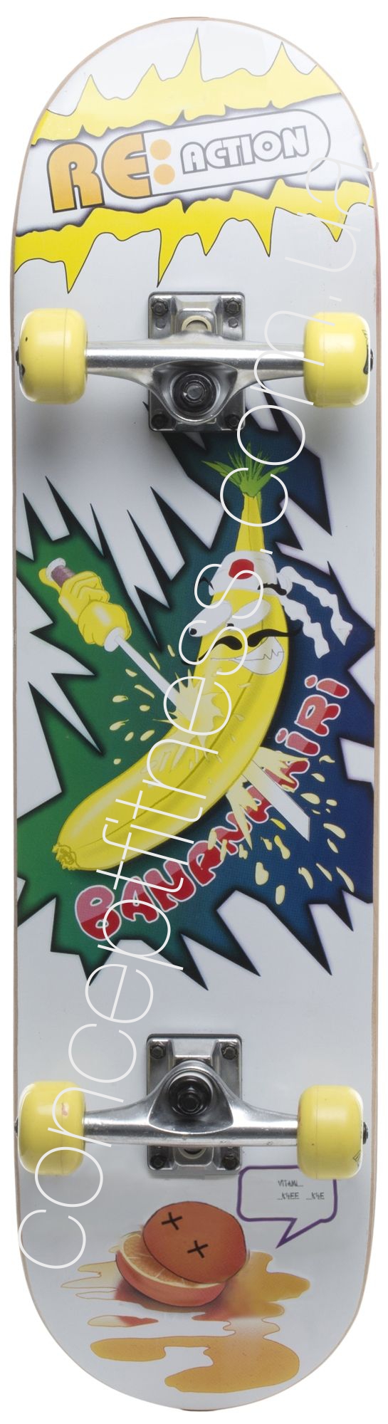 Скейтборд Reaction RSKB315-96 характеризується хорошою керованістю, маневреністю, неперевершеним стилем, був розроблений для початківців скейтбордистів. Діаметр коліс 52 мм, мають хороше зчеплення, підстава ndash; 9 шарове, поліуретанові амортизатори погашають всі дорожні нерівності.