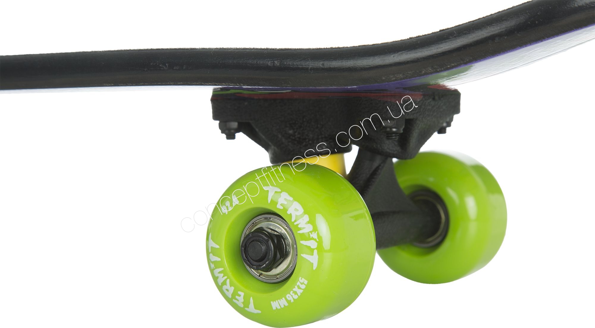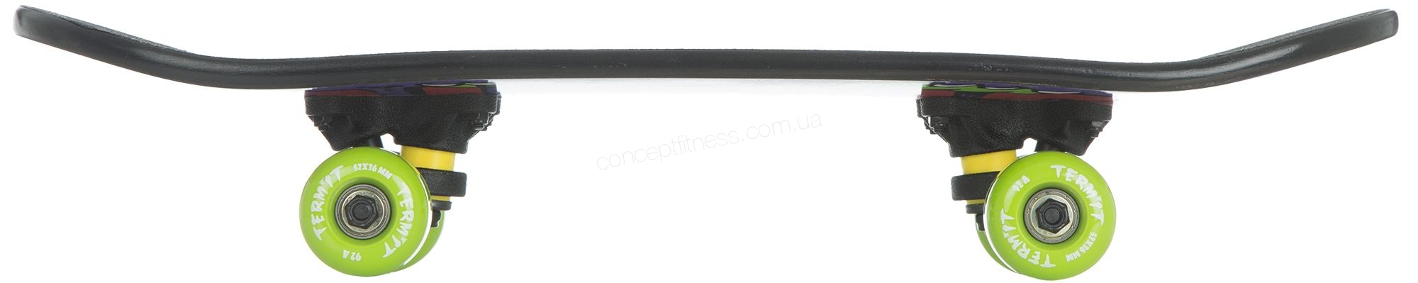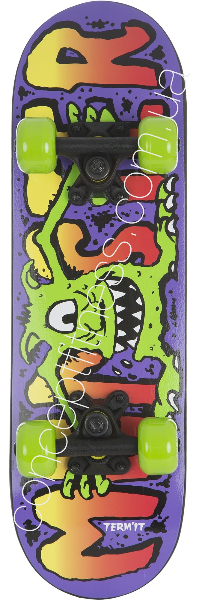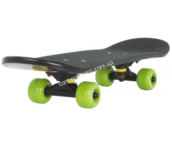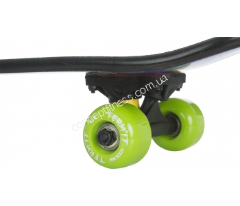 Дитяча модель скейтборду Терміт TSKB116-ZY оснащена дерев'яної, 9-ти шарової декою, поліуретановими амортизаторами, погашати всі дорожні нерівності. Гарантія на скейтборд 2 роки, не вимагає спеціального догляду, витримує вологу і потрапляння прямих сонячних променів. Трак ndash; алюмінієвий, міцний, не прогинається під весом.