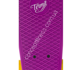 Міні-круизер Termit CRUISE16-P6 розроблений творцями для маневреного, швидкого і комфортного вуличного переміщення. Дека повністю пластикова, витримує навантаження до 80 кг, не прогинається, відштовхує воду, а також легко очищається від бруду. Матеріалом деки виступає поліпропілен, встановлені широкі колеса, розміром 60х45мм, жорсткістю 78А.