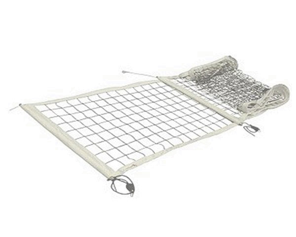 Шнур синтетичний кручений без наповнювача діаметром 2,2 міліметра, виготовлений з поліпропілену чеського виробництва, з добавками для поліпшення стійкості до УФІ і перепадів температур. Виріб готовий до використання: до 4 кутах сітки вшиті шнури натягу довжиною 1 м кожен, діаметром 3 міліметрів — по одному в кожному кутку. Сітка обшита зі всіх 4-х сторін синтетичною тканиною шириною 3 сантиметри у готовому вигляді см і забезпечена по верхньому боці сталевим тросом з діаметром 2 мм в оболонці із пластику.