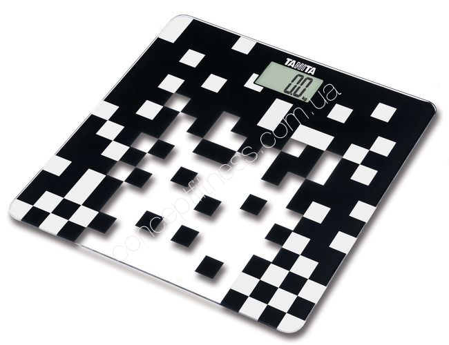 Стильний прилад для зважування в формі шахової дошки Таніта, артикул HD-380 Black запускаються дотиком руки, ноги, а після тривалої бездіяльності автоматично відключаються. Харчування здійснюється від батарейок, дуже часто ваги встановлюють на кухні, у ванній кімнаті, особливо для відстеження постійних показників, складання плану дієт, харчування.