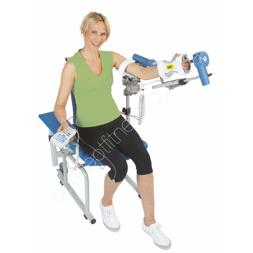 Тренажер для пасивної розробки ліктьового суглоба Ормед ARTROMOT-E2, артикул OR71-48 застосуються разом з комфортним кріслом. Систематичні процедури відновлюють рухливість суглобів після хірургічних втручань, тренуючи сухожилля біцепса.