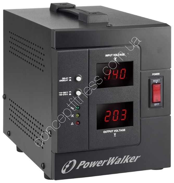 Стабілізатор напруги PowerWalker AVR 2000 /SIV комплектується ручкою для транспортування з однієї кімнати в іншу. Модель здобула неймовірну популярність серед спортсменів, захищає від перегріву і спалахів світла бігову доріжку, орбитрек, велотренажер і інший спортивний інвентар. Похибка показань на рівні 10%, максимально вихідна напруга 280В. Прилад однофазний з природним охолодженням і потужністю 1,6 кВт.