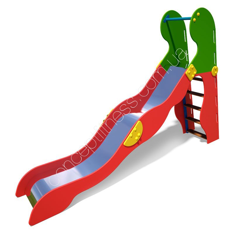 Хвилеподібна модель для швидкісного спуску Інтератлетика T103 витримує максимально 80 кг навантаження, при загальній вазі 83 кг. Чи безпечно перебувати від гірки на відстані не менше 1,5 метра. Для виробництва барвистою гірки задіяли міцний дерев'яний брус, фанеру і тонколистовий метал. Гірка розвиває координацію, витривалість, займає дітей після садка і школи, дозволивши батькам трохи отдохнуть.
