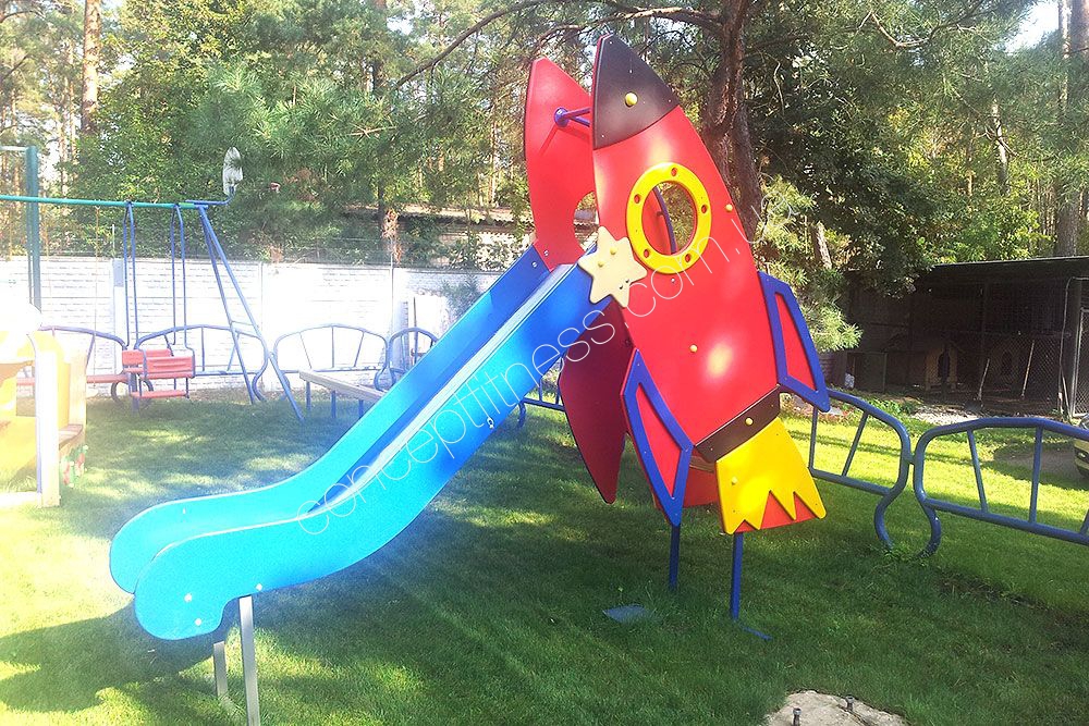 Чудова гірка для дитячих утіх Ракета Інтератлетика, арт.TE109 відправить непосид в безкраї космічні простори, дозволить відчути себе капітанами боліда. При монтажі не потрібно особливих інструментів і навичок, вона встановлюється на бетонну основу або гарненько бетонується щоб уникнути хаотичних розгойдування. Модель витримує максимально 80 кг навантаження, при загальній вазі 83 кг. Спуски-підйоми сприяють розвитку координації, витривалості, займуть малюків після садка і школи, дозволять батькам трохи відпочити.