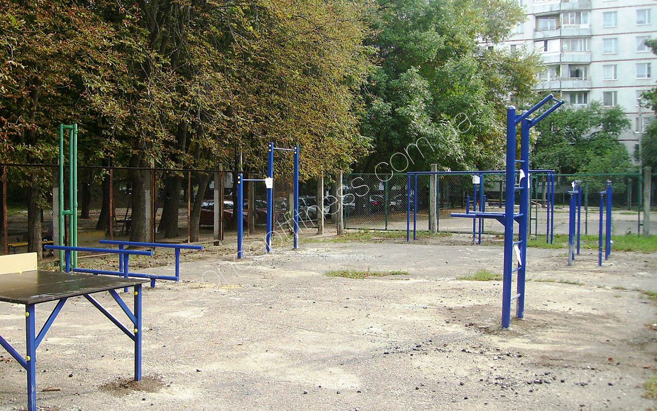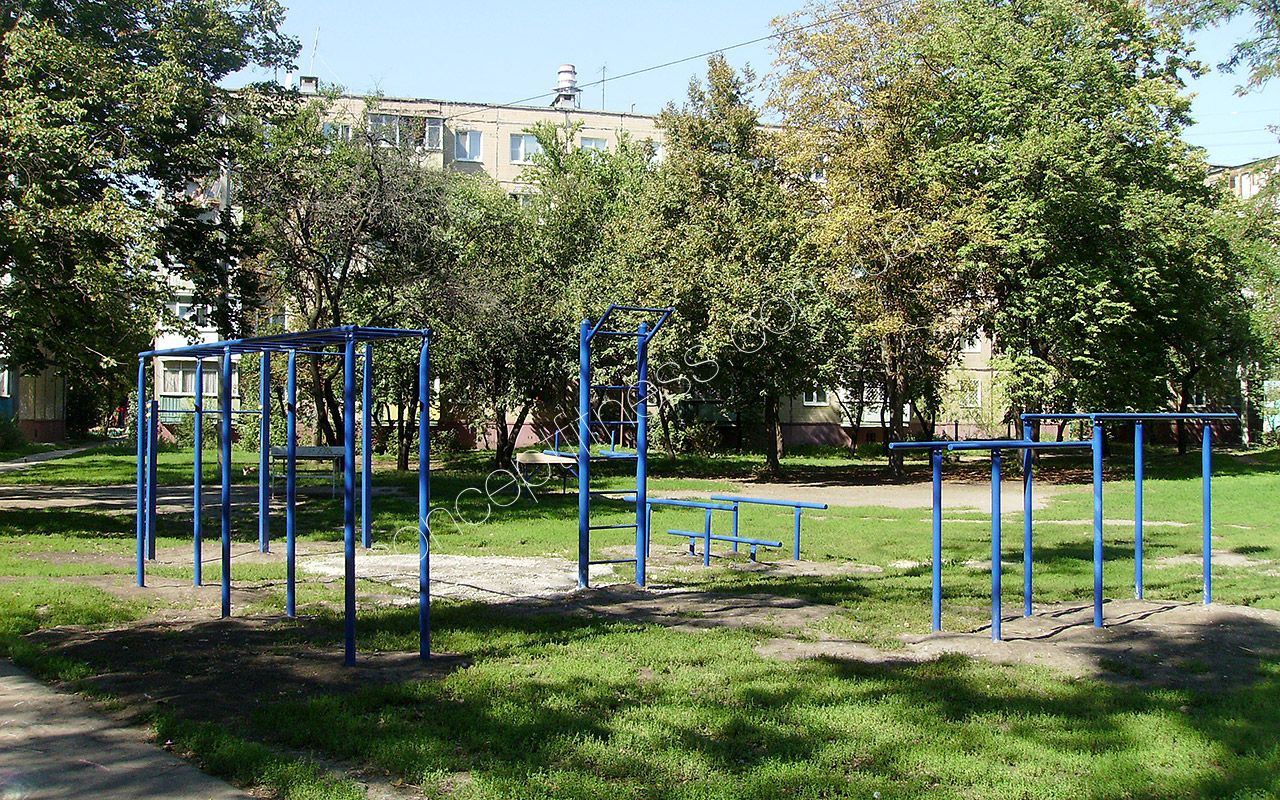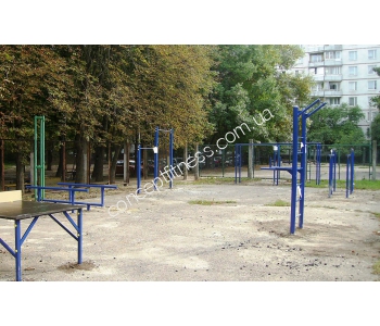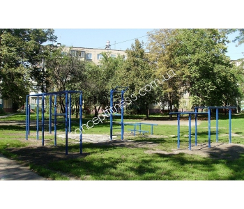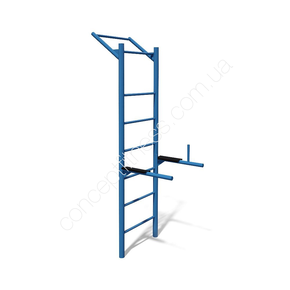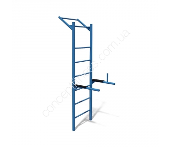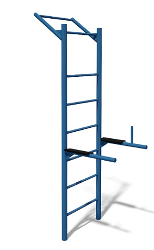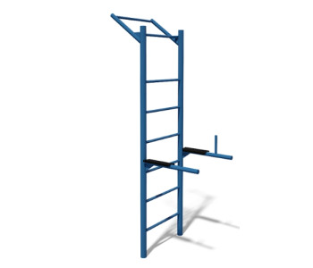 Гімнастичні обладнання Інтератлетика, арт. УТ112 зміцнює прямі і косі, нижні м'язи черевного преса, формує поставу, прибирає бічні жири, підтягує тіло. Підстава прикручується до бетонної заставної, заливається бетоном або закопується. Міні-комплекс синього кольору, пофарбований порошковою фарбою, витримує температурні перепади, стійкий до виникнення корозії.