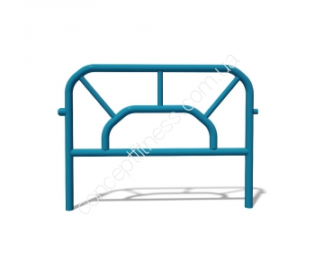 Секція огорожі InterAtletika S719.1 виготовляється будь-якої форми, розміри і різними малюнками. Модель представлена в формі прямокутника з округленими кутами, посередині розташовані промінчики сонечка. Труба не піддається корозії, може прослужити безвідмовно кілька років. В основі виробництва лежить сталева труба, діаметром 42,3мм, пофарбована порошковою фарбою синього відтінку. Секція важить 20 кг, надійно блокує раптовий відхід малюків за межі комплексу, дозволяє батькам комфортно розміститися поруч, виконати яскраві сімейні фото.