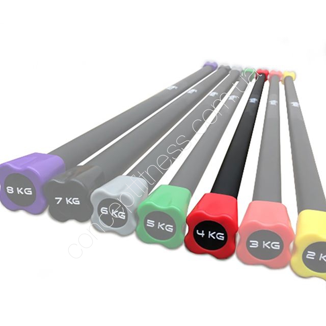 Палка для гімнастики і фітнесу Фітекс, артикул MD1137-4KG виділяється особливою формою наконечників, які не ковзають по підлозі. Бодибар динамічне пристосування, відрізняється приємним виглядом з нековзною поверхнею. Палка обов'язковий снаряд в фітнес-центрах, домашніх спортзалах, популярна серед багатьох спортсменів, використовується разом зі снарядами, гантелями. Подібний снаряд використовується початківцями штангістів для опрацювання присідаючи, випаду, нахилу тулубом, жиму.